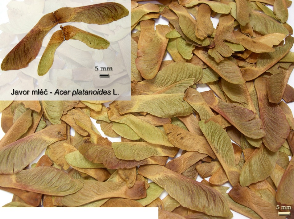 A. platanoides - mléč - sklízíme v září. Semeno uzrává již koncem srpna, ale opadává až v říhnu hromadně po prvních mrazech, kdy je vítr roznáší. Klíčivost mívá 50 - 60 %. Můžeme je vysévat ihned po vysušení nebo je skladujeme zcela suché a 6 - 12 týdnů před výsevem je stratifikujeme při 3 - 5 °C. Nejvhodnější jsou výsevy již v únoru. Za 5 - 6 týdnů vzejde 400 - 500 semenáčků na 1 m2. Musíme je chránit před mrazy.