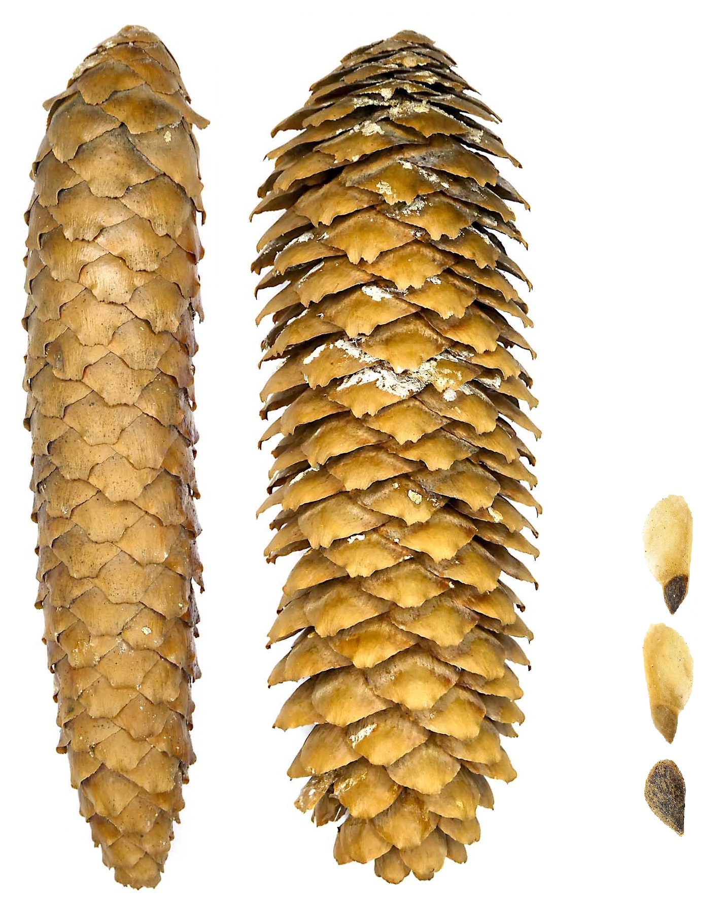 Druhy nejběžnější a hmotnost 1000 semen v gramech: P. ABIES Karst. 5,5 - 8,0, P. bicolor Mayr 2,5, P. breweriana S. Wats 6,2, P. engelmannii Engelm. 3,4, P. glauca Voss. 3,0, P. jezoensis Carr. 2,5, P. MARIANA B. S. P. 3,0, P. x mariorika Boom 5,0, P. OMORIKA Purkyně 3,3, P. ORIENTALIS Link 6,7, P. polita Carr 14,0, P. PUNGENS Engelm. 4,3 a P. SITCHENSIS Carr. 2,0.